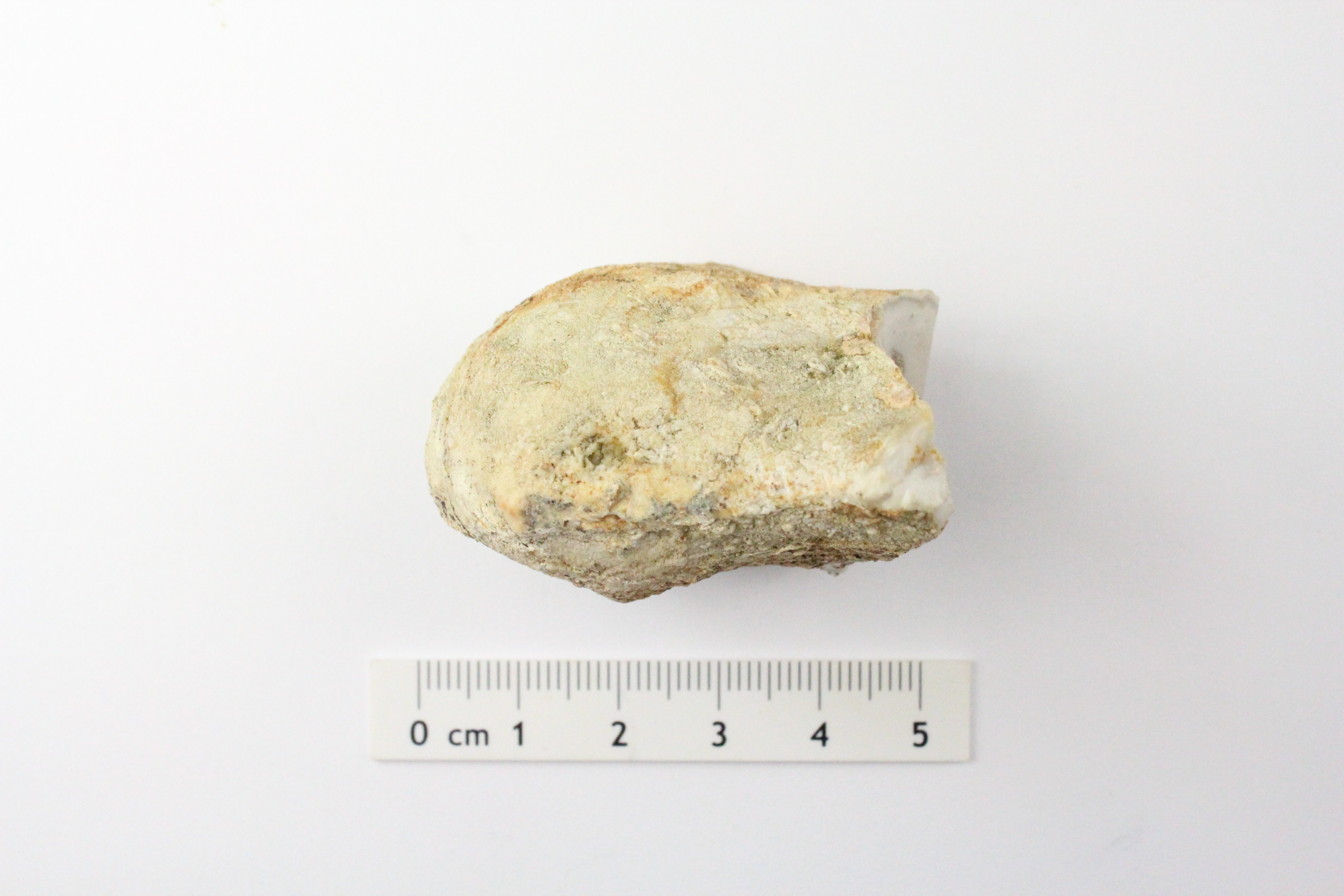 feinkörniger Hornstein mit Fossilien, Knolle mit rauer Kortex, Kalk anhaftend