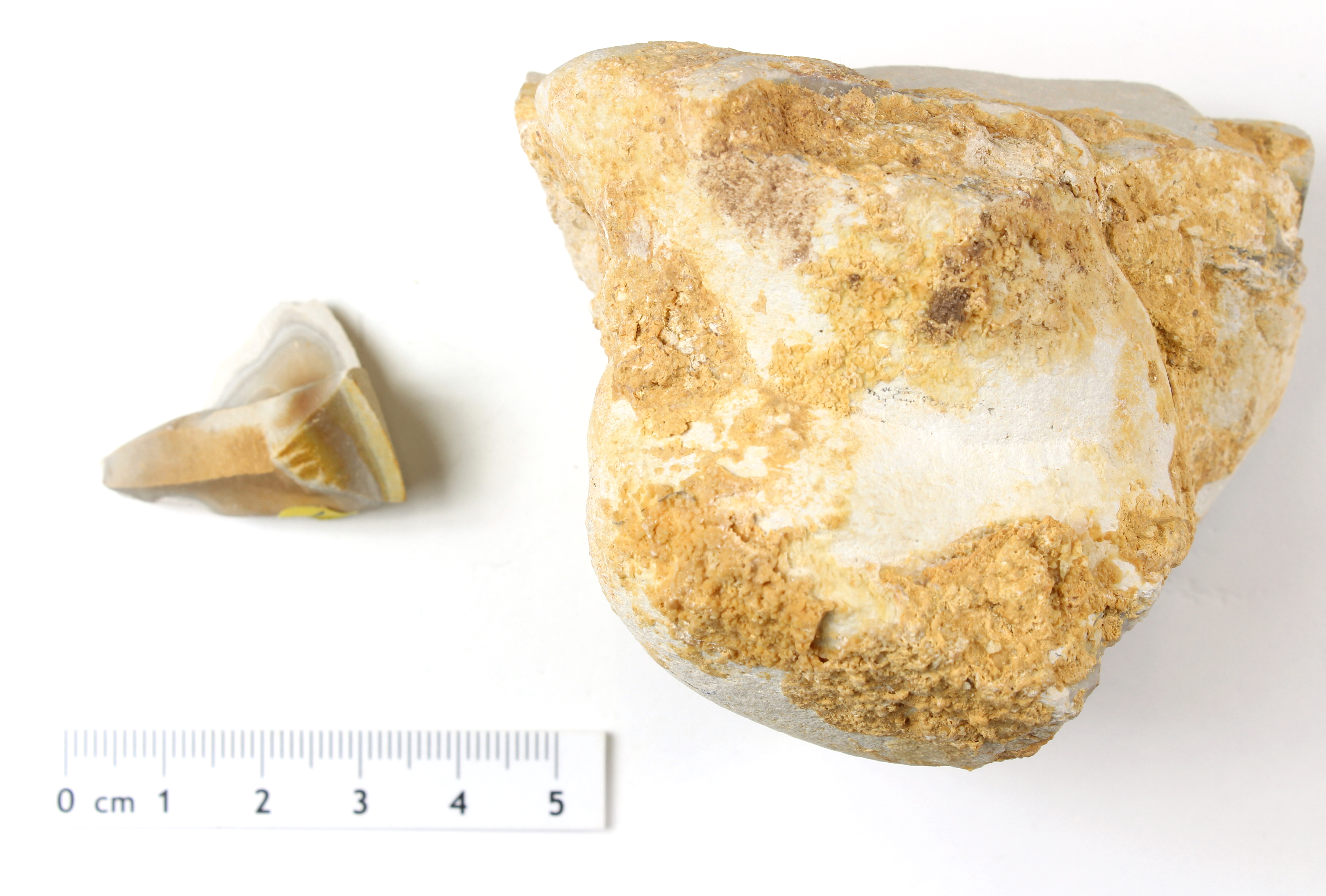 feinkörnige Hornsteinknolle mit dünner Rinde; versintert
