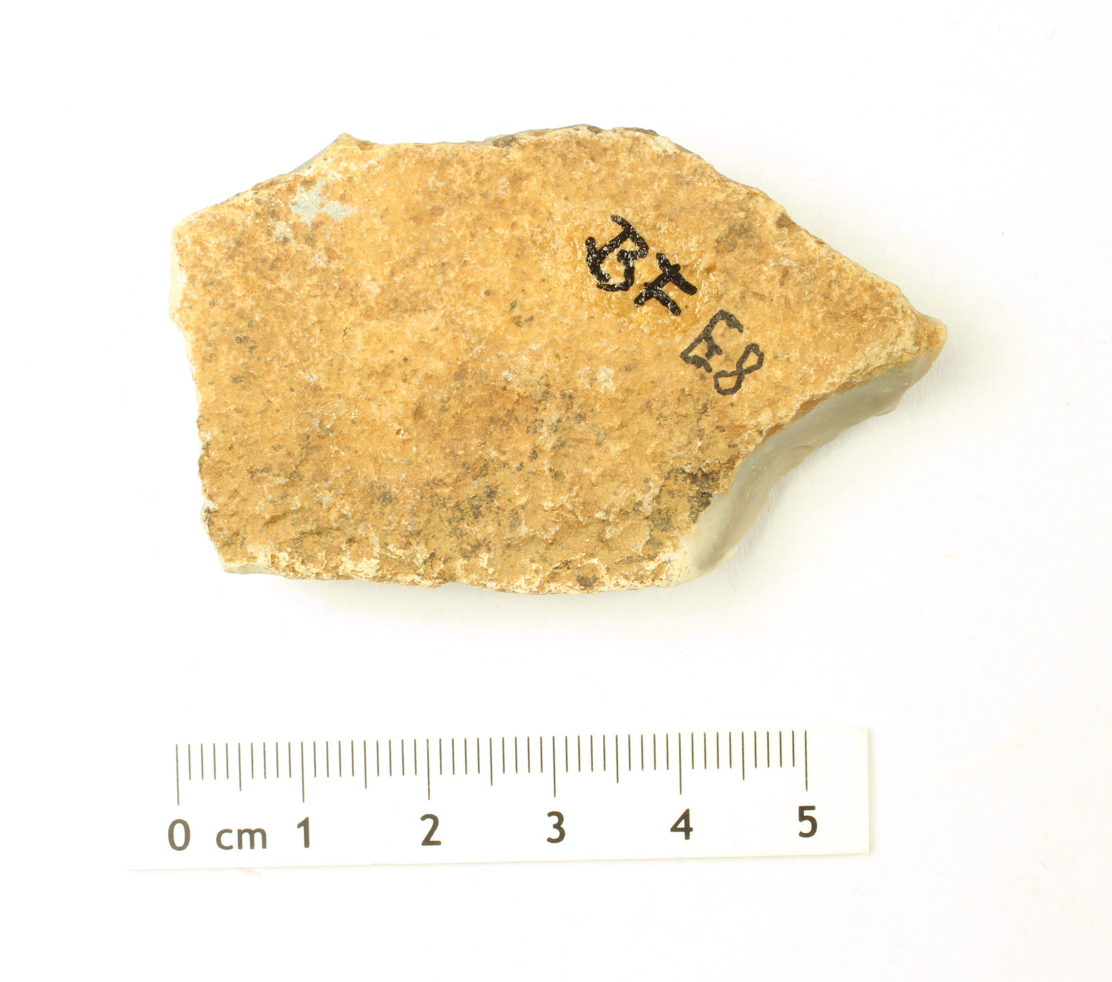 In ursprünglicher Datenbank nicht vorhanden, daher bisher keine weiteren Informationen. Im Lithotheks-Schrank Teil einer großen Sammlung von Stücken mit der Aufschrift "BF". Auf Grund der unterschiedlichen makroskopischen Eigenschaften jeweils als Einzelstücke (E1-E12) in WissKi aufgenommen. Fundort Baiersdorf (nicht näher lokalisierbar), vermutlich aber in der Umgebung des dortigen Feuersteinbergwerkes.
