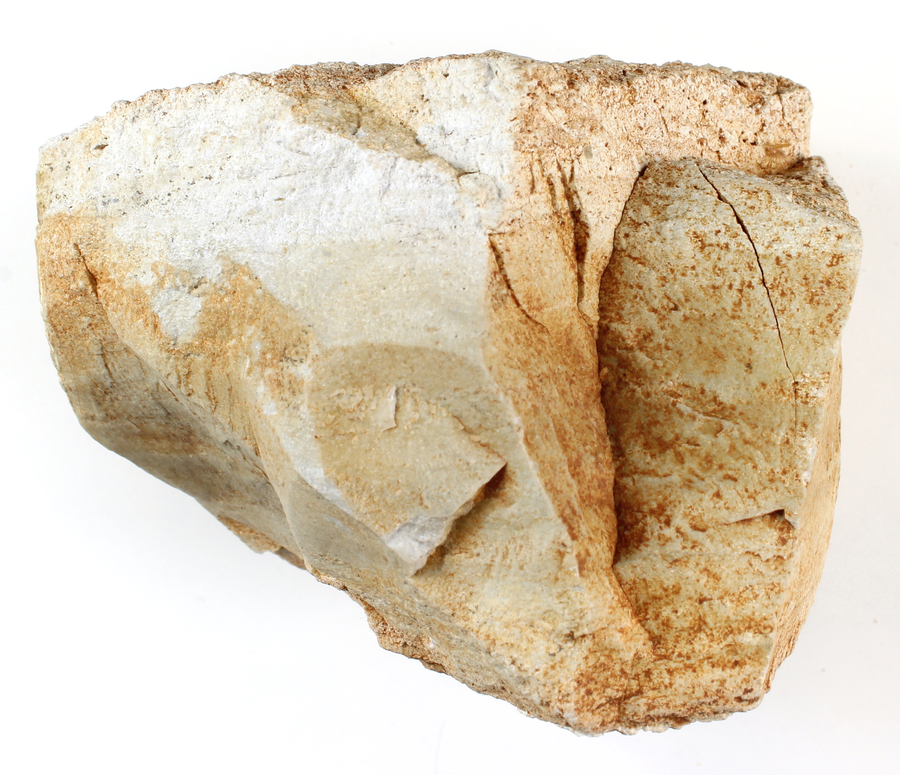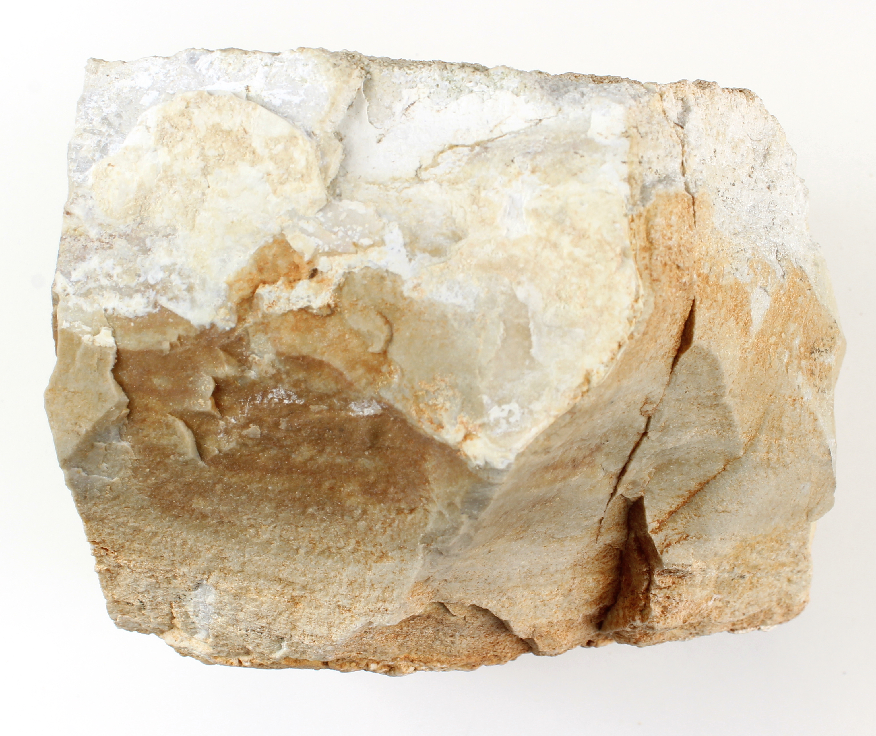 feinkörnige Hornsteinknolle mit dicker Rinde; Spaltfläche glitzernd mit Schlieren