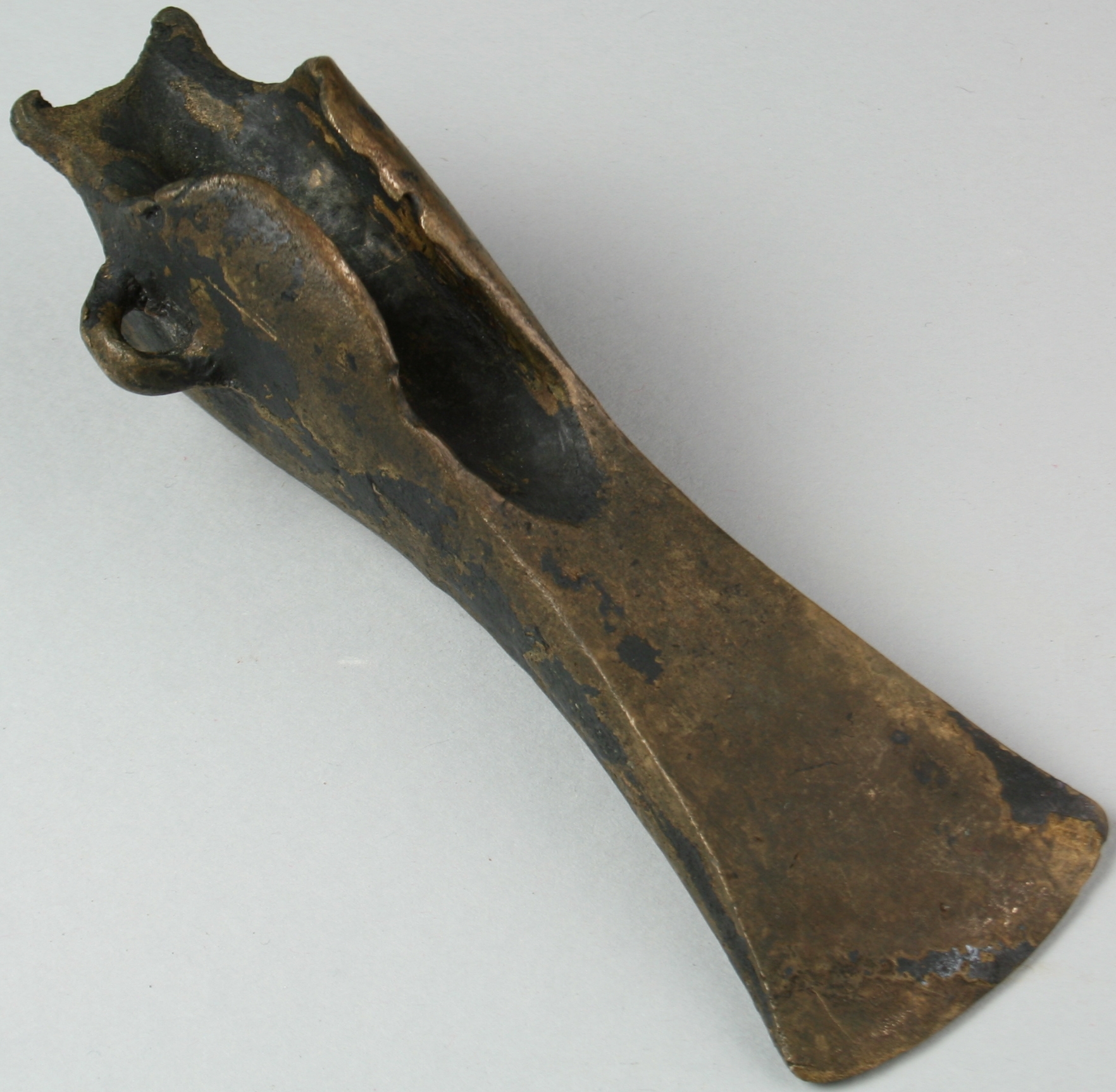 Eintrag Inventarbuch: Oberständiges Lappenbeil mit seitlicher Öse aus Bronze. Fundort unbekannt.